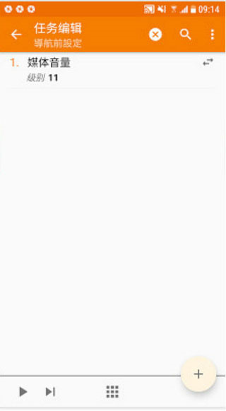 2、再回到我之前举的例子,我想触发的动作是开启媒体音量,所以我就在任务页面的右下角点击「+」号,添加了将媒体音量调整至11的动作。