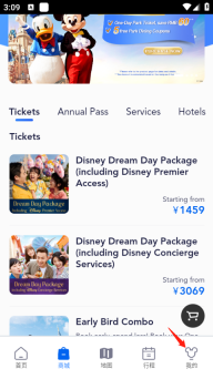 3. 购买/查看门票信息:轻松购买公园门票。进入“我的门票”查看乐园门票信息