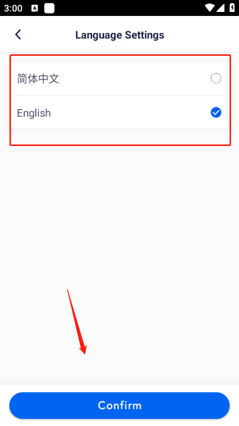 3、在这里可设置中文跟英文,设置完点击confirm就可以啦。