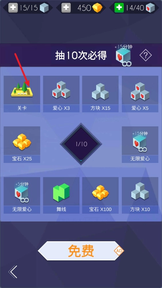 2、第二种方法是点击此处的免费体验按钮,借助观看广告的形式临时解锁,完成关卡后即可永久解锁该功能。