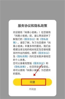 1、点击网易小蜜蜂,进入后会看到服务协议与隐私政策,点击“同意”按钮。
