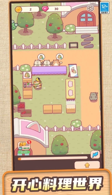 2.使用金币升级设备、解锁新美食,并招募猫咪助手分担经营工作;