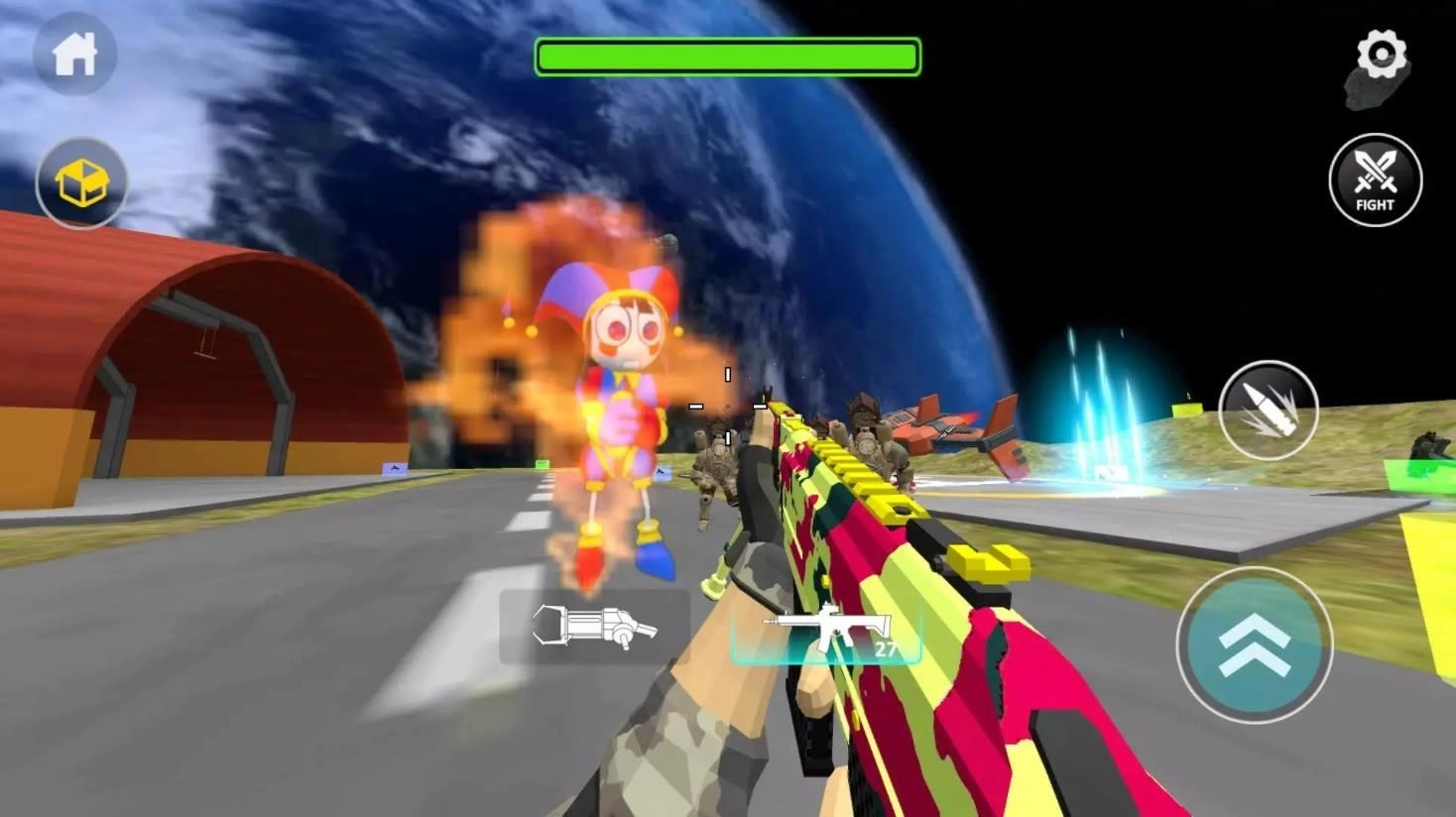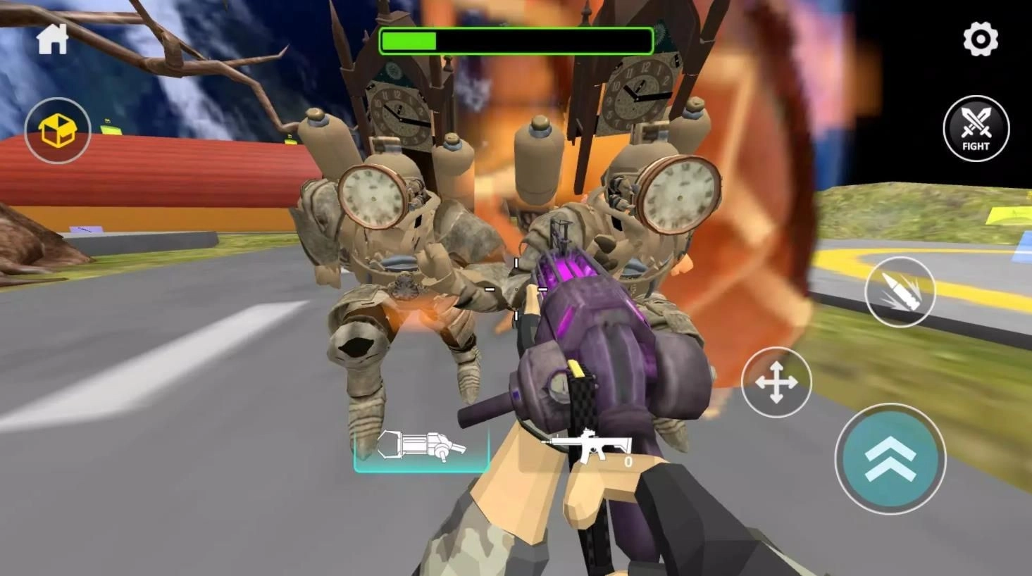 2、在沙盒在线模拟器中穿梭各种场景,享受射击、奔跑等多种玩法;