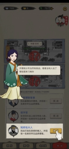 3、你需要充足的经营来支持你经营镖局,小心的尝试挑战,慢慢的达成目标。