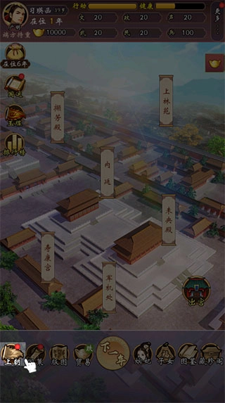 3、这款游戏里的主要朝臣划分为六个部门,分别是吏部、户部、工部、兵部、礼部和刑部。
