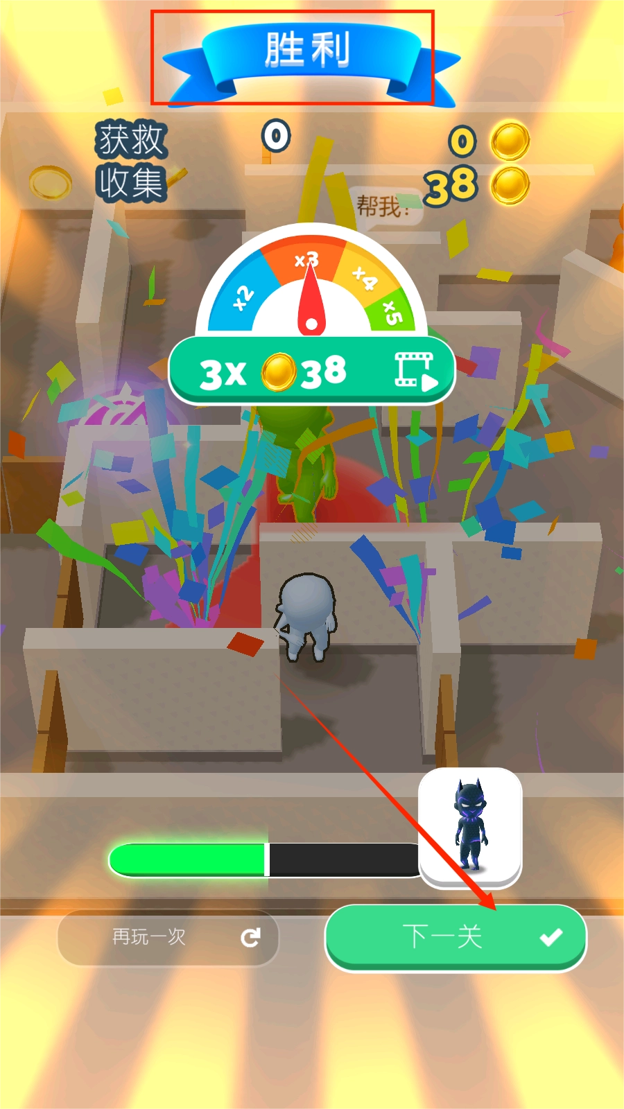 3、胜利就能获取奖励并且进入下一关。