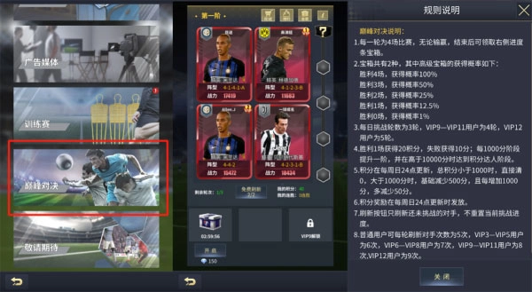 刚才提到合成号码的道具来自巅峰对决,就让我们来看一下这个全新的玩法。进入该界面后,你将面对四场比赛的挑战,取胜的场次越多奖励也越丰厚,当你面对强劲的对手时,你也可以选择刷新对手避开锋芒。四场比赛为1轮,每轮结束后还会有宝箱等待着你。