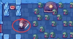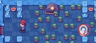 2、接着会有大量蛇掉落下来,直到其中一条蛇掉到右侧的机关上,此时需要用放大镜对那条蛇进行放大操作。