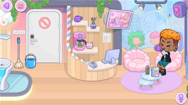 在多普莱斯的世界里,设有理发店、商城、公寓等六大场景,玩家能在这些不同场景中开展角色互动,场景里的各类物品也支持点击互动。这里还可以创建并添加不同的角色形象,点击角色后,能够选择触发各式各样的表情与动作。此外,你还能前往公寓,通过布置各类物品来打造专属于自己的房间!