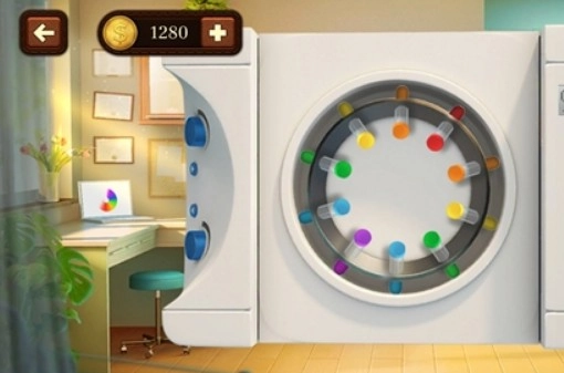 找到凳子上的机器,根据给出的提示,完成药水添加。(黄+红=橙色,黄+蓝=绿色)