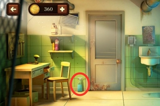 将得到的喷壶对着脏的镜子使用,再用抹布将其擦干净,看到镜子上有线索。