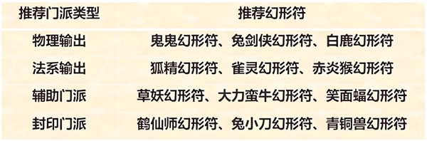 辅助门派和封印门派则分别推荐大力蛮牛幻形符和青铜兽幻形符,建议在攻略高难度PVE关卡是再选择使用它们哦~
