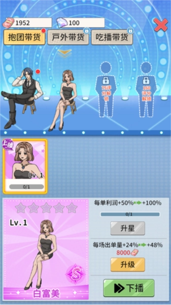 3、玩家与主播均设有升级系统,随着等级提升能够解锁更多功能与产品,进而增加收入,这是一款相当有趣的模拟游戏。