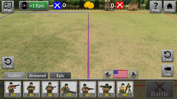 3、进入游戏后,你可以派遣士兵和坦克进行作战;