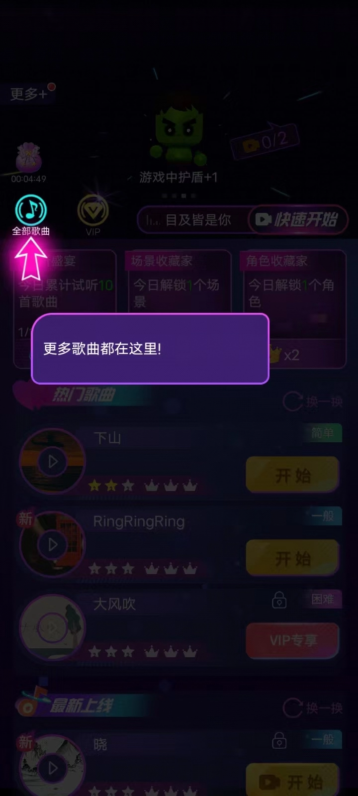 2、教程结束以后,进入主页面,点击全部歌曲;