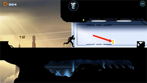 3、继续往前奔跑,可看到前方有悬挂的障碍物,往下滑动屏幕,角色就会往下滑铲。