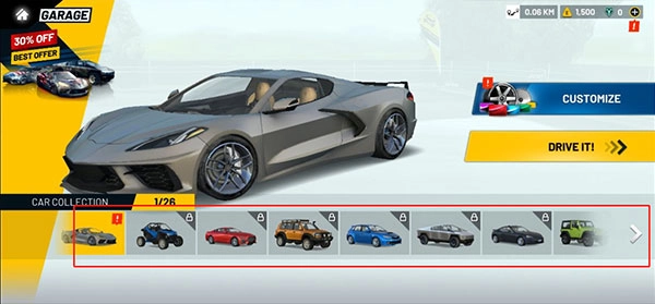 5、多种炫酷赛车等你解锁,体验不一样的驾驶手感;