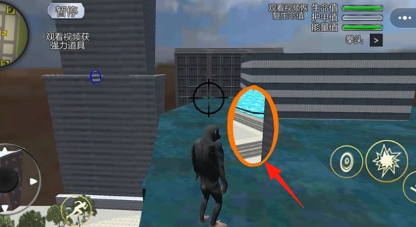2、遇到建筑时,按箭头指引【寻找隐藏入口】(如橙色圈区域),进入建筑内部,探索新场景、收集道具。