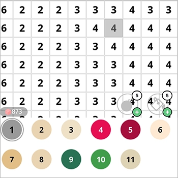 9. 填色操作:点击或拖动手指在图案的像素块上进行填色,注意按照数字编号的顺序进行。