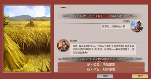 3.好感度攒到一定的程度,我们就可以触发纳妾选项了