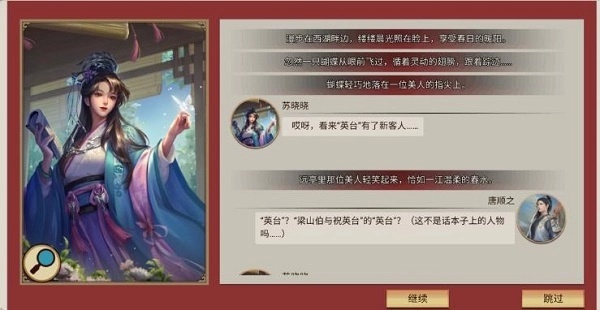 第一段剧情触发需要去(浙江)(郊外)(西湖)触发后美人就会一直在西湖边。