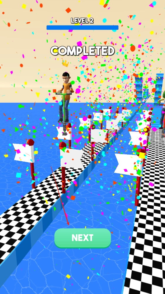 2、道具助力系统:赛道上散落着能临时提升弹力的道具、减速障碍等,巧妙拾取并运用这些道具,有助于突破关卡中的难点,还能丰富闯关时的策略选择,使得每一次挑战都能有不一样的应对方法。