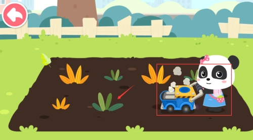 3、点击红色箭头植物,帮助熊猫完成园艺任务。