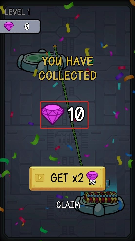 3、人群输送完成后,界面弹出YOU HAVE COLLECTED提示,显示获得10颗紫色钻石,点击下方CLAIM按钮即可领取奖励。