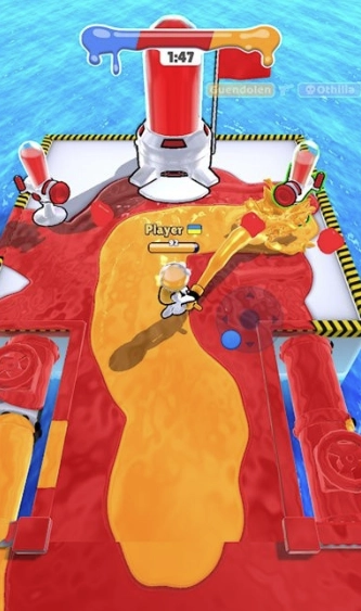 2、在争夺过程中会与对手团队展开对抗,可向对手喷射油漆干扰其行动,甚至能限制对手的行动,为己方争夺场地创造机会。