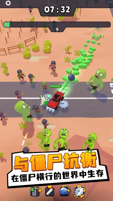 1、玩家可滑动屏幕来操控战车的行进方向,战车会主动攻击靠近自身的敌人。在此过程中,玩家需留意躲避各类障碍以及僵尸的合围,同时持续消灭敌人。