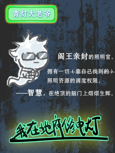 【青灯大老爷】:受阎王亲封为照明官,堪称地府里最顶的打工人。为了配得上他这般独特的头脑,我们可是精挑细选了一块高光呢。