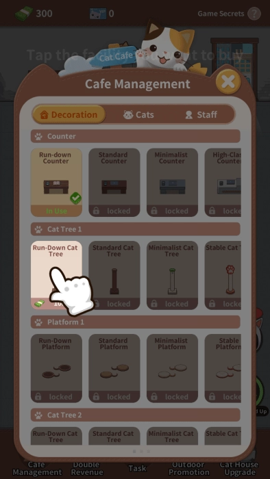 升级你的猫咪,能增强和顾客的互动,还能获取更多奖励。你的猫科动物家庭成员越多,咖啡馆的生意就会越红火!
