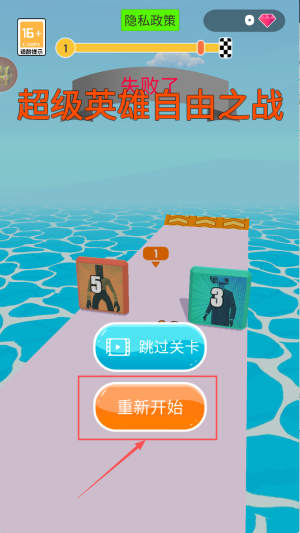 4、重新挑战或跳过当前关卡:当战斗失利后,你可以点击“重新开始”按钮再次发起尝试,也能够选择“跳过关卡”按钮来越过当前的挑战环节。