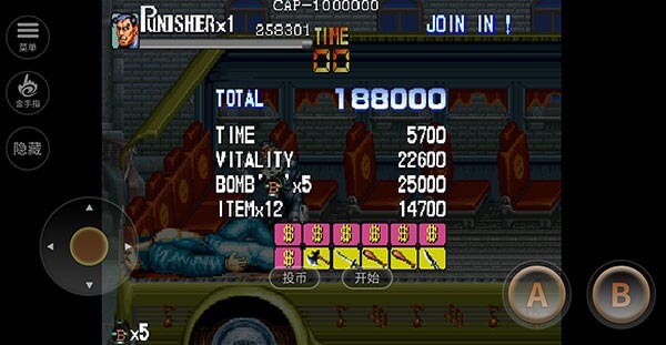 6、角色阵亡后点击“投币”与“开始”即可继续游戏,不耽误进度。