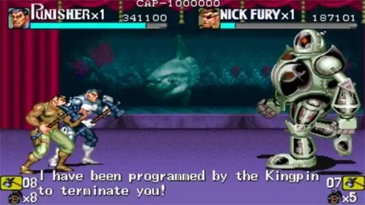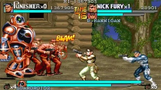 《惩罚者》是1993年由街机领域巨头CAPCOM推出的横版清版动作游戏,其改编原型为美国漫威旗下的经典角色“惩罚者(The Punisher)”。这款游戏曾与《恐龙快打》齐名,在全球范围内掀起了街机热潮,即便到了今天,依旧被大量玩家视作清版动作类游戏中的殿堂级经典之作。作为一款融入了美漫文化元素的动作闯关游戏,《惩罚者》不仅拥有激烈的打斗场面与硬朗的美术风格,还蕴含着深沉的剧情内核。玩家在游戏中会化身为一位为家人复仇、决心彻底铲除罪恶的孤胆英雄,开启一段满是热血与正义的打击犯罪征程。