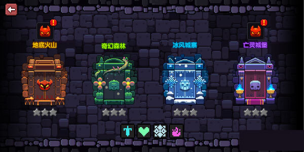 1、秘境副本是装备的核心获取渠道,每一层秘境都包含地底火山、奇幻森林、冰风城寨与亡灵城堡四张分地图,对应怪物属性为火、水、木及杂属性(即三种属性怪物皆有),玩家选用针对性武器可大幅提升效率!秘境副本将随玩家冒险等级提升解锁新的层数。