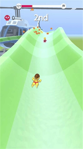 4、通过左右划动的方式控制角色进行横向移动,玩家需要注意躲避沿途的障碍并完成闯关;