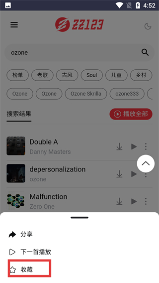 2、在搜索结果页面,找到目标歌曲后点击其右侧的三点按钮,可打开包含多项操作的功能菜单。