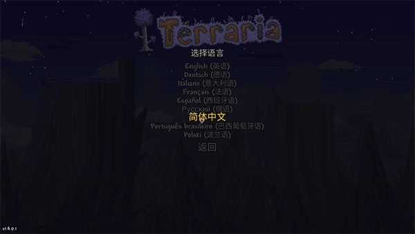 2、运行泰拉瑞亚游戏,可以选择简体中文。