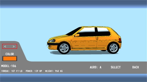 3、这时可以点击红色框内的两个小按钮来更换汽车颜色,挑选一个你喜欢的颜色。