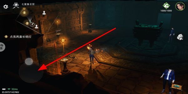 进入场景后,通过移动操作来控制角色的行动,按照主线任务的提示,完成点亮长明灯之类的指定目标,以此推动剧情发展。