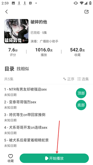 4、在详情页点击【开始播放】按钮,即可收听该广播剧。