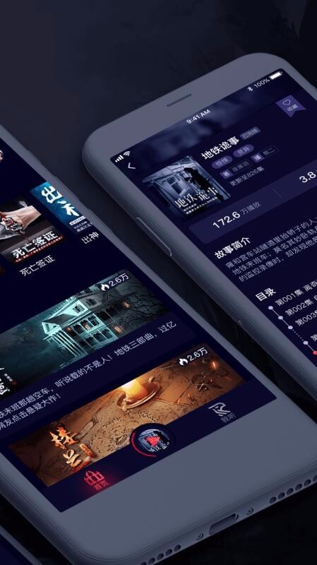语音播放是我们重点打造的语音收听功能,能让用户沉浸在悬疑惊悚的情节氛围中。