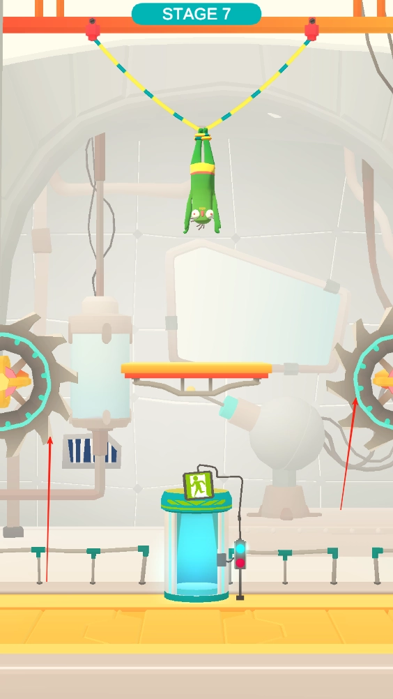 2、两边的齿轮会上下移动,为了避开,一刀直接切断两根线,让僵尸掉落到平台上,僵尸会自己走下去到出口。