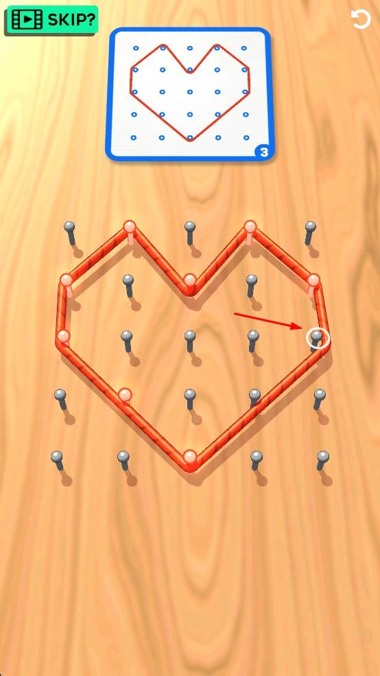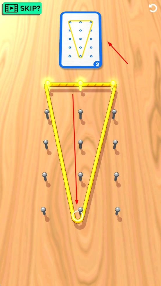 2、根据上方的图形提示,操控绕钉线绕着钉子绘制相应的图形,为完成关卡任务奠定基础。