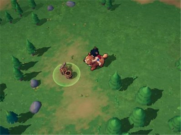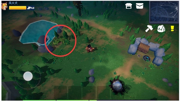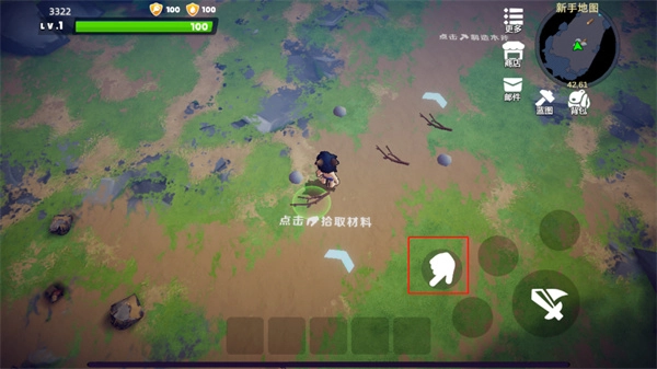 2、进入游戏后,玩家可以操控角色来收取一些材料,走到材料附近点击如下图的红色选款即可收取;