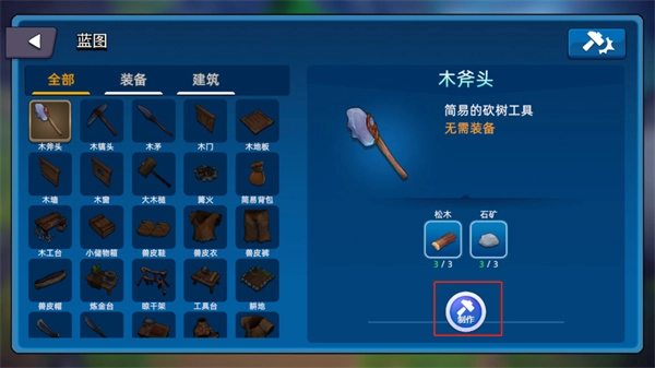3、玩家收取到一定数量的材料,玩家可以点击蓝图来制作工具;