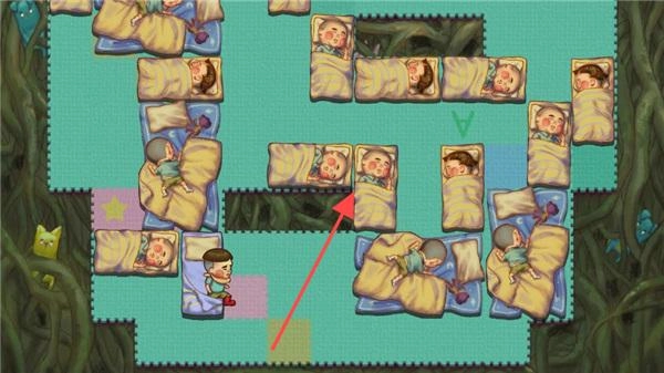 3、按照箭头所指的方向操控角色移动,例如在床铺密集的场景里遵循指引行进。