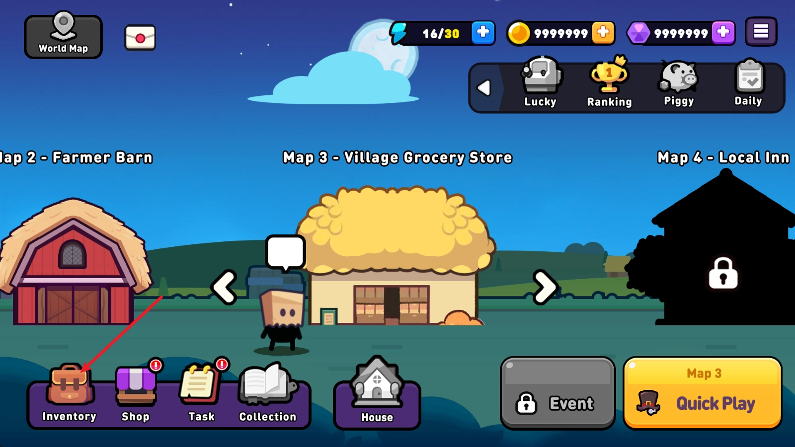 3、随后退回到主界面,点击左下角的背包图案。