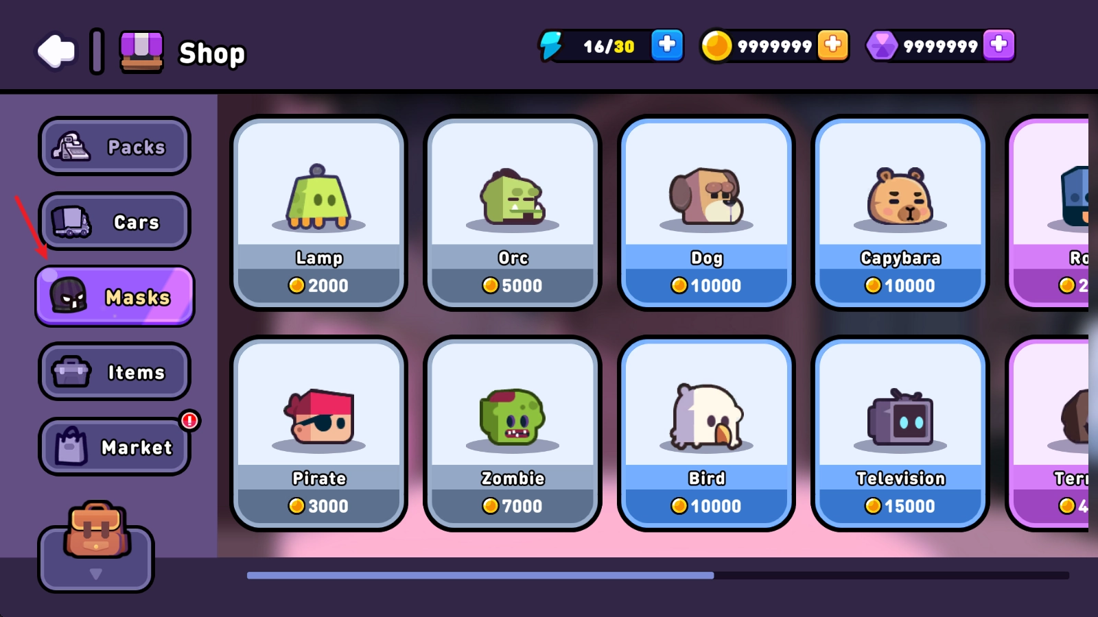 2、接着找到Masks这一栏,这里有大量皮肤可供购买。